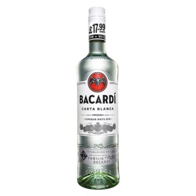 Bacardi Carta Blanca is a classic white rum that brings a clean, smooth taste to your glass, perfect for cocktails and mixed drinks. With an alcohol content of around 37.5% ABV, this premium rum originates from one of the world’s most respected rum producers, Bacardi, with roots in Puerto Rico and a legacy dating back to 1862. Its light, fresh flavor profile features subtle citrus and mild sweetness, making it an excellent base for Mojitos, Daiquiris, Rum & Cola, and other classic drinks. The ingredients include sugar cane molasses, yeast, and water, fermented and distilled carefully before aging in oak barrels and charcoal filtering to achieve its distinctive smoothness. Whether enjoyed mixed or neat on ice, Bacardi Carta Blanca delivers balanced character with a clean finish that appeals to both beginners and seasoned spirit lovers.