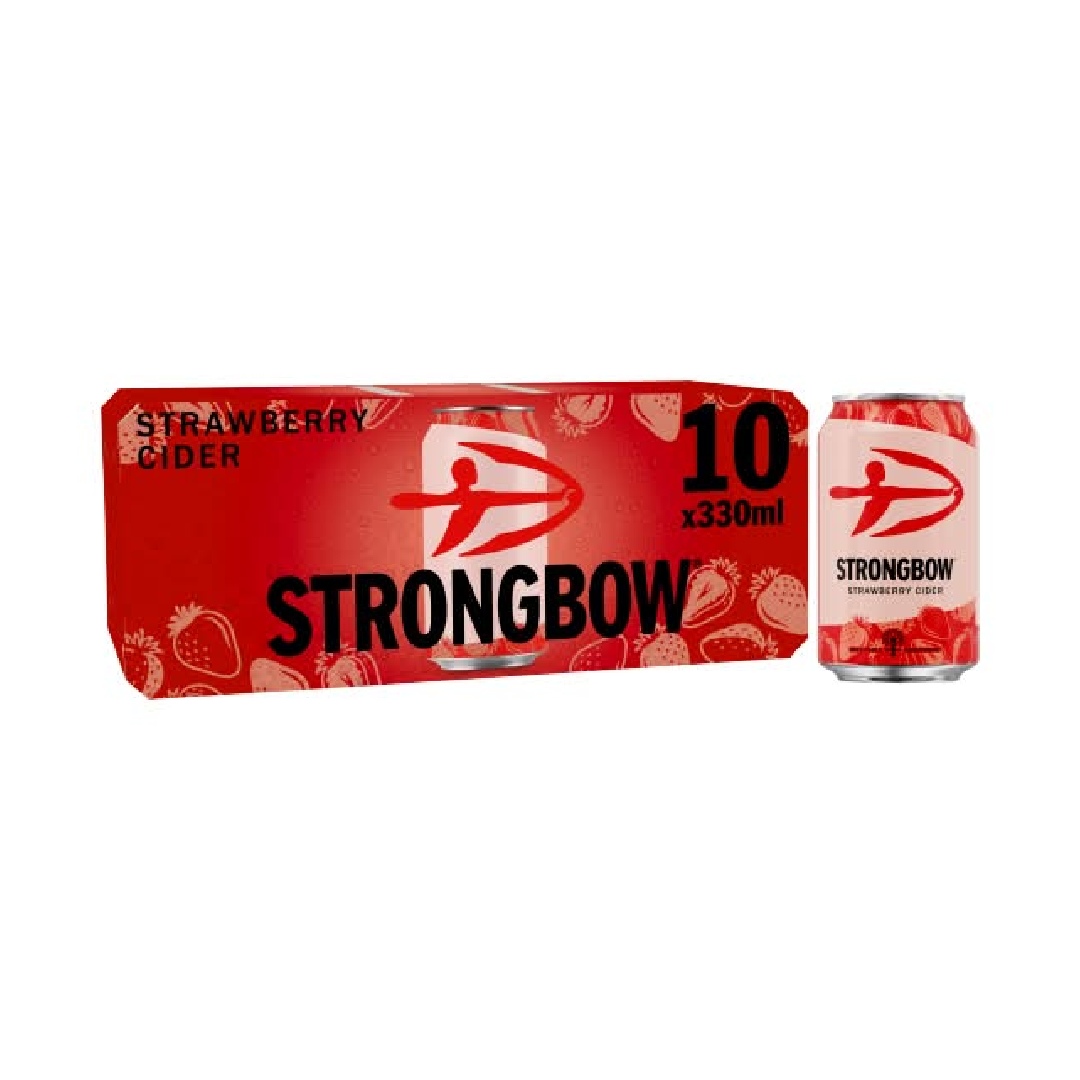 Strongbow 330 x 10 Strawberry CiderSSZ is a fruit-infused cider combining apple crispness with juicy strawberry sweetness. Lightly sparkling and refreshing, it is suitable for warm weather, picnics, and gatherings. Originating from the United Kingdom, Strongbow uses modern cider-making methods. Ingredients include fermented apple juice, strawberry flavoring, water, sugar, citric acid, and sulfites. Alcohol content is around 4% ABV. The 10-pack provides convenience for group occasions. It offers a fruity alternative to traditional ciders and beers.